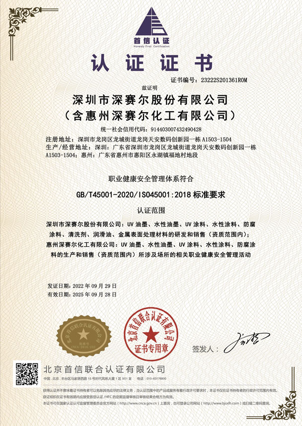 職業(yè)健康安全管理體系認證證書