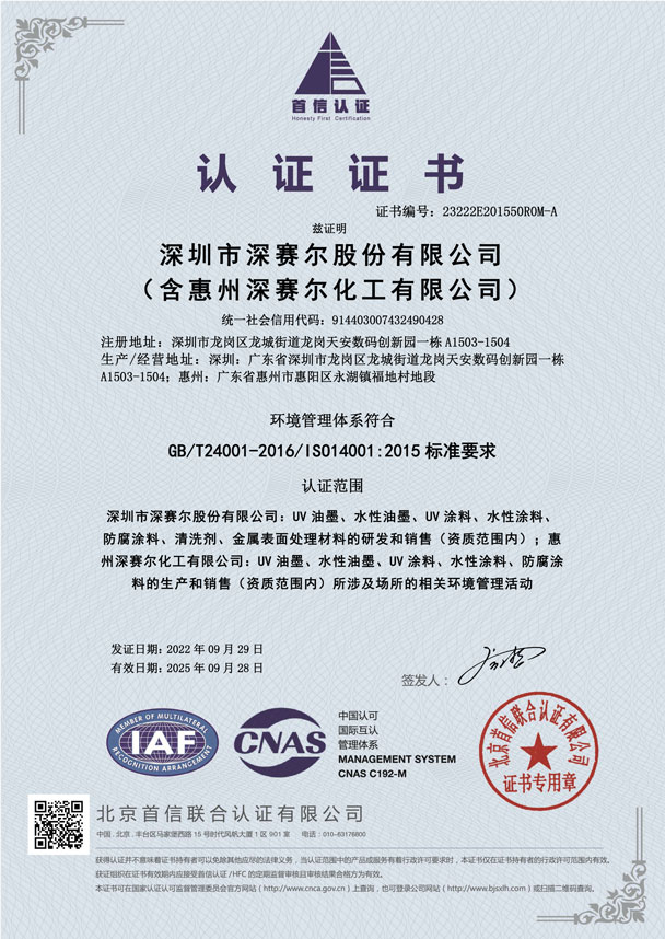 環(huán)境管理體系認證證書